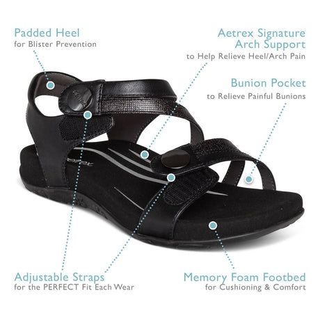 3+Aetrex Jess Women's Adjustable Quarter Strap Sandal in Smoke