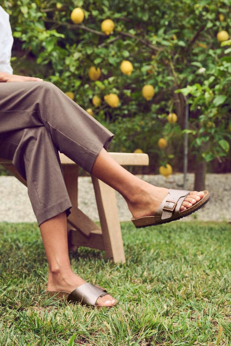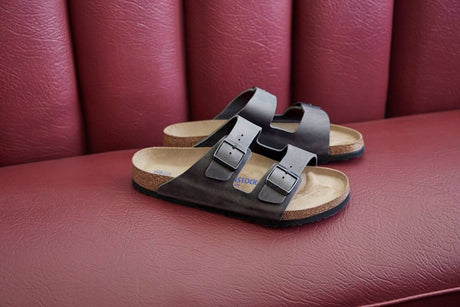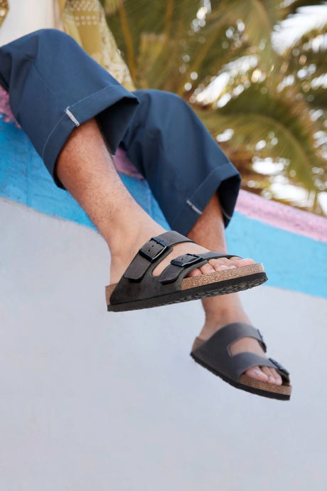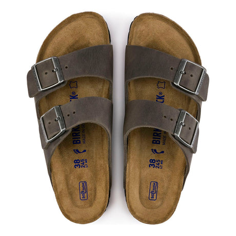Arizona Soft Footbed Iron Grey Oiled Leather Slide Sandal