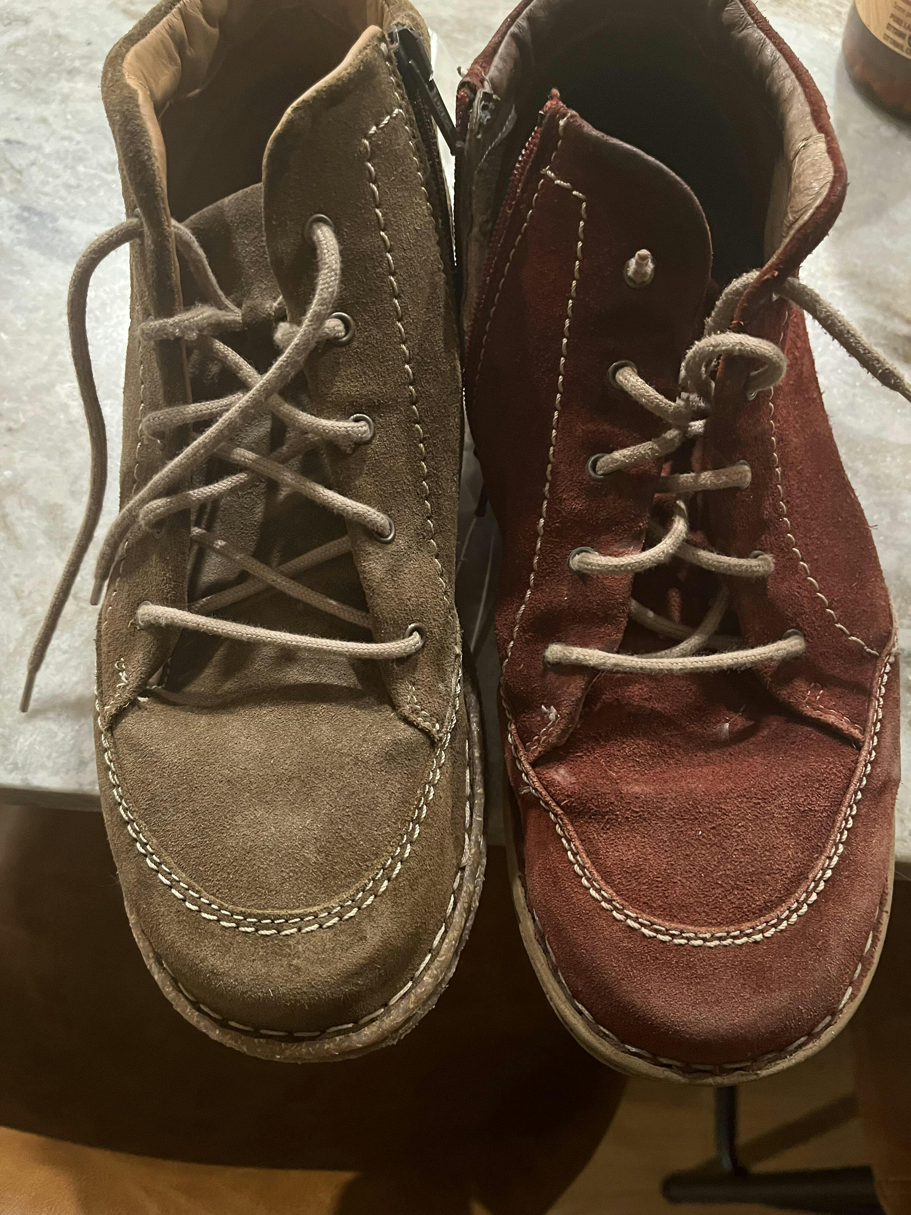 Ladies casual lace up suede ankle boot. Finished in soft distressed suede leather with stitch detailing and a unique Josef Seibel stamp. Neele 01 has a soft, cushioned removable footbed and is padded on the tongue and around the ankle for added comfort. Sitting atop a lightweight, durable and flexible hand stitched natural finish sole and finished with a contrasting lace.