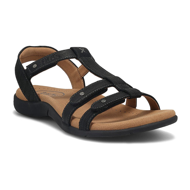 This stunning strappy leather sandal is sure to become a standout in your wardrobe. The fully adjustable straps provide a customizable fit for various widths and insteps. Enjoy exceptional comfort with the Taos Soft Support™ premium footbed, featuring Cool Recovery Foam®. The arch and metatarsal support deliver relief and comfort, easing pressure on the ball of the foot.