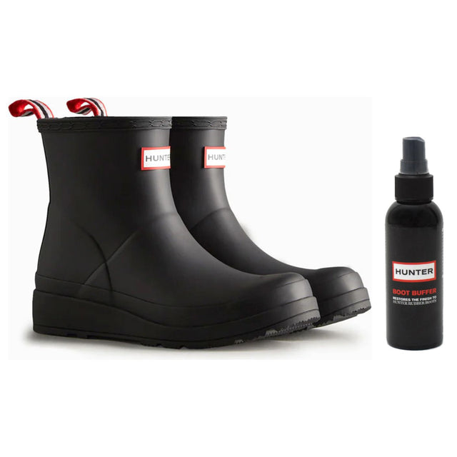 Hunter Play Short Rain Boot Black & FREE Boot Spray