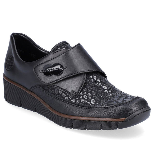 The shock-absorbing, lightweight sole with a wedge heel ensures every step feels cushioned, while the extra-soft cover sole pampers your feet with added comfort. The narrow E fit offers extra support, ensuring a secure fit for those with a slimmer foot profile. Perfect for the colder seasons, these slippers combine both style and well-being in true Rieker fashion.
