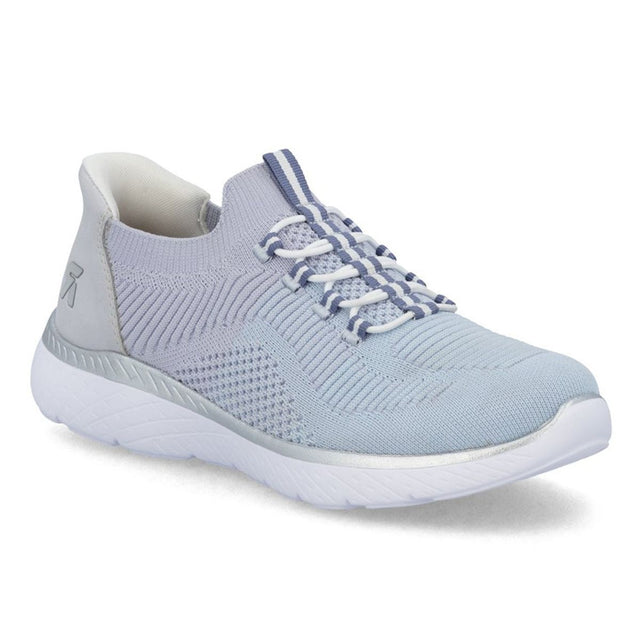Product Description: These aqua-lilac sneakers combine sporty style with ultimate comfort. Featuring a soft textile upper, they offer a breathable, lightweight fit perfect for active days. The 25mm sport sole gives you added height while providing flexibility and cushioning. Equipped with a MemoSoft insole, these shoes ensure that every step feels soft and comfortable. The Ethylen Vinyl Acetate (EA) sole offers durability and excellent traction. With Rieker Sport design, these shoes combine both comfort and sporty flair, making them an ideal choice for casual and active wear.