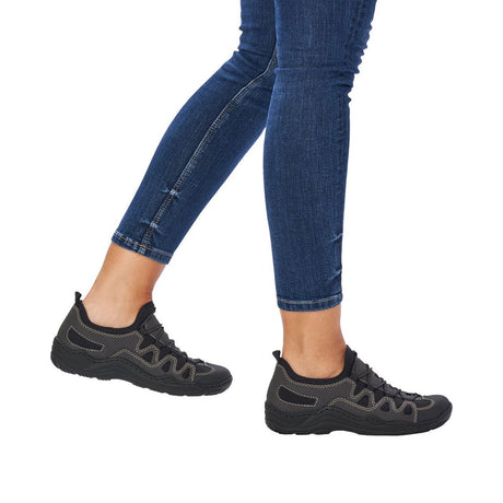 Rieker V3950-00 Mailles Women’s Wedge Sandals in Black | Lightweight Summer Comfort