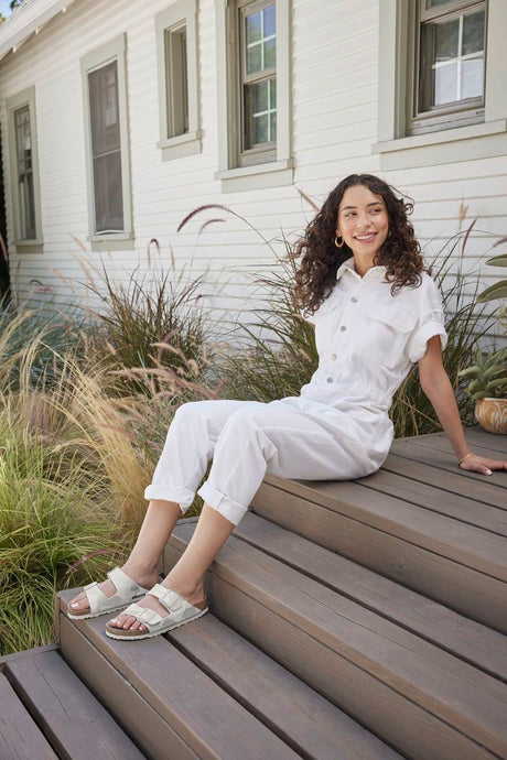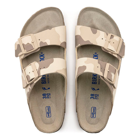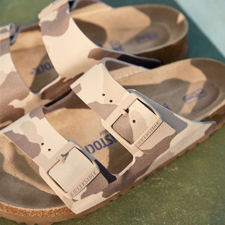 1+Birkenstock Arizona Women's Soft Footbed Birko-Flor in Desert Soil Camo Snow