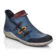 These ocean blue ankle boots from Rieker are a must-have for the Fall and Winter seasons. They combine stylish design with practical features for everyday comfort. The easy-to-use side zipper ensures quick entry and exit, while the multi-colored eyelets on the side add a touch of flair to the boots. The robust profile sole gives excellent traction, keeping you sure-footed no matter the terrain.