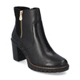 Product Description: These stylish jet-black ankle boots by Rieker, crafted from smooth leather, offer both elegance and comfort. Featuring the durable and flexible stitchdown construction, they ensure a perfect fit and longevity. The model is designed for ease of use with a zipper and elasticated shaft edge. A golden charm on the zipper adds a touch of glamour. The light, shock-absorbing sole with a block heel offers comfort and stability with every step. Perfect for Fall and Winter, these boots are a must-have for your wardrobe!