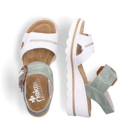 Rieker 67476-81 Women’s White/Mint Wedge Sandals – Lightweight Summer Comfort