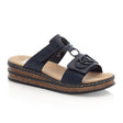 These pacific blue mules by Rieker combine comfort and style effortlessly. Crafted from high-quality imitation leather, they feature a hook-and-loop fastener for easy entry and a secure fit. The middle strap with a circular element adds a stylish touch to the design. With a shock-absorbing, lightweight sole and a wedge heel, these mules provide cushioning with every step. The extra-soft cover sole adds an additional layer of comfort, and the narrow E 1/2 fit offers extra support, making these mules a perfect combination of fashion and function.