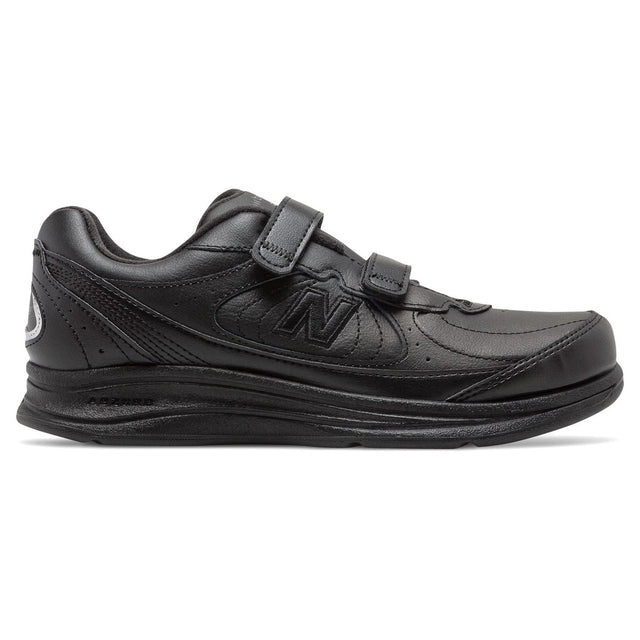 The New Balance WW577VK is a black leather walking shoe designed for comfort, durability, and ease of use. Featuring double Velcro straps, this shoe provides a secure and adjustable fit without the need for laces, making it a convenient choice for everyday wear. The premium leather upper offers durability and support.