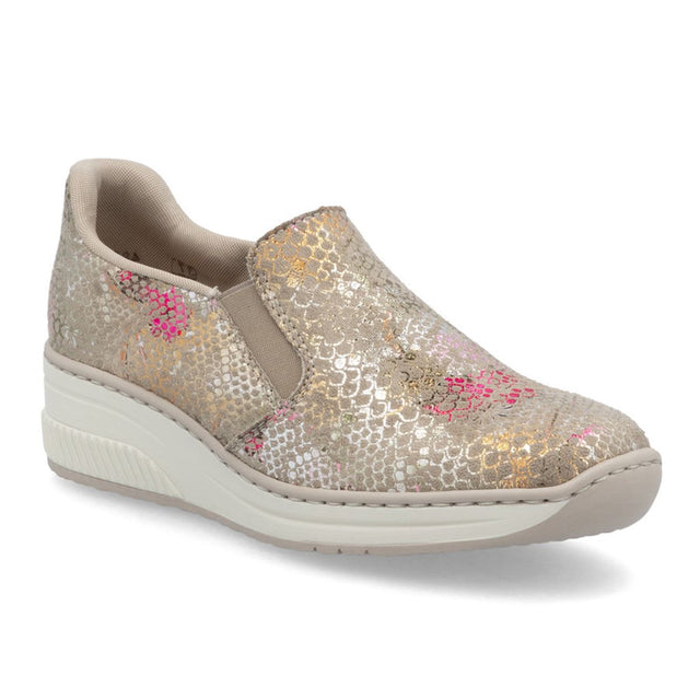 These chic Ladies' Shoes in a versatile multi-color design are the perfect combination of comfort and style. Made from synthetic leather, these shoes offer a sleek and modern finish that complements any wardrobe. The wedge heel adds a fashionable lift while ensuring comfort and stability for all-day wear. The sport sole provides excellent flexibility and traction, making these shoes ideal for active use. With a soft insole, they offer added cushioning for extra comfort, making them suitable for both casual outings and semi-formal occasions. Whether you're dressing up or keeping it casual, these shoes blend practicality with a stylish design.