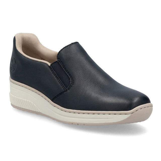 These stylish Ladies' Slip On Shoes in blue offer the perfect blend of comfort and elegance. Crafted from high-quality leather, these shoes are designed for both durability and a sleek finish. The wedge heel provides a subtle lift while ensuring stability and comfort for all-day wear. Equipped with a sport sole, they offer excellent traction and flexibility, making them perfect for active wear. The soft insole ensures a cushioned, comfortable fit, adding to the overall comfort of the shoes. Whether you're walking through your day or dressing up for a special occasion, these shoes combine both comfort and style effortlessly.