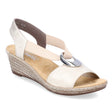 These wedge sandals by Rieker are designed for fashion-forward comfort. Made from imitation leather, they combine practicality with style. The elastic inserts ensure a perfect fit, while the wide straps and heel strap provide optimal support for your feet. The shock-absorbing and lightweight RIRICON sole with a wedge heel offers long-lasting comfort, even on extended wear. Perfect for spring and summer, these sandals are an ideal addition to any wardrobe.