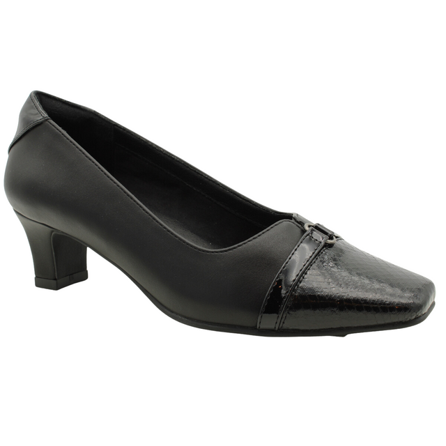 Add a touch of elegance to your wardrobe with these vegan PU dress pumps, featuring a stylish snake print toe cap for a bold and sophisticated look. The padded comfort insoles provide cushioning for all-day wear, while the soft flex outsoles offer flexibility and ease of movement. These versatile pumps are perfect for both formal and casual occasions, offering comfort and style in one chic package.