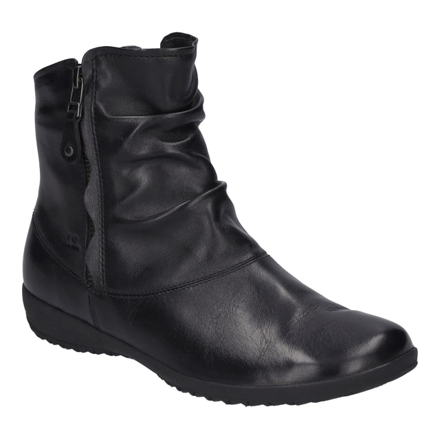 The Naly 24 schwarz boot from Josef Seibel is a stylish ankle boot for your wardrobe this season.Featuring a genuine leather upper with a beautifully soft, velvet lining. Double zipper entry for an easy on and off. The Naly 24 side zipper ankle boot is designed with a durable TR outsole.
