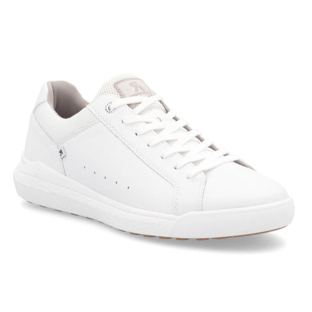 These stylish White and Sport White men's lace-up shoes by Rieker Sport offer a perfect combination of comfort and sporty elegance. Crafted from premium leather, the shoes feature a durable Ethylen Vinyl Acetate (EVA) rubber sole, ensuring excellent support and flexibility. The removable soft insole allows for a personalized fit, and the sport unit sole provides a lightweight and supportive foundation for all-day wear. With a sleek design and practical flat heel, these shoes are perfect for casual and semi-formal occasions, making them a versatile addition to any wardrobe.