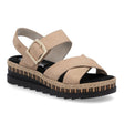 Dream team - style and comfort! Stay cool and casual with these beige wedge sandals made from smooth leather. Featuring crossed straps and a hook and loop fastener, these sandals offer a customizable fit for your foot. The heel strap provides additional support for a secure feel. The stripe pattern on the sole adds a modern touch to the overall design. The light and shock-absorbing sole pampers your feet with every step. The extra soft cover sole enhances comfort, while the narrow E 1/2 fit ensures the perfect fit. Simply top!